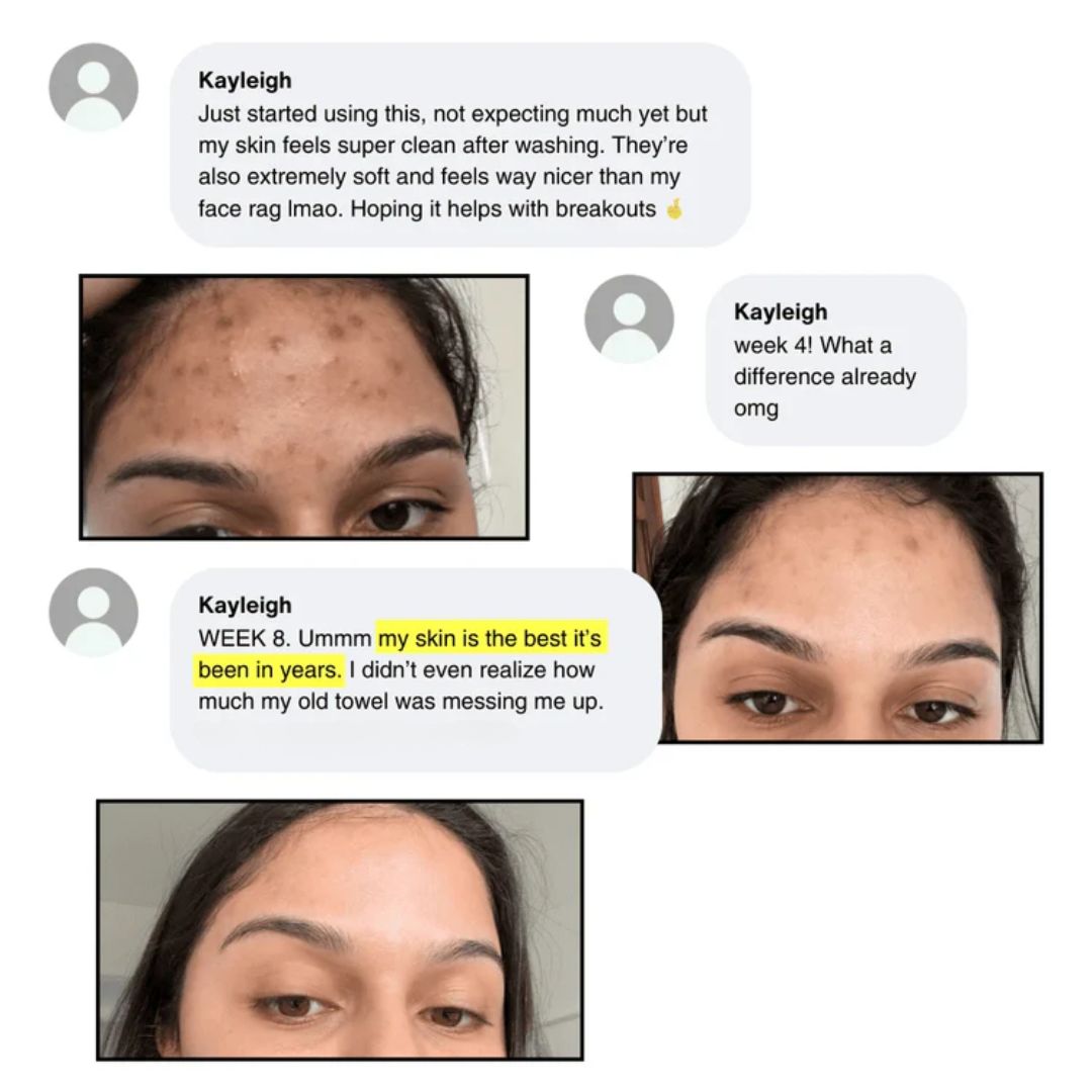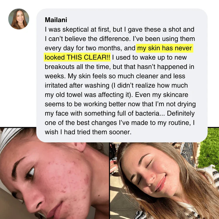 But studies show that bacteria can survive multiple wash cycles. Plus, traditional towels have a rough texture that can irritate your skin, inflame acne, and leave behind lint.